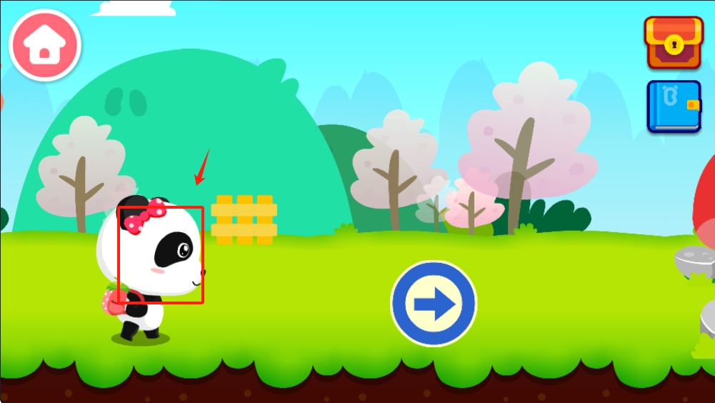 1、点击右侧蓝色圆形箭头按钮,查看熊猫形象并点击其头部进行互动。