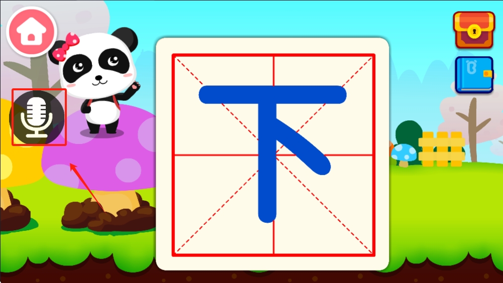 3、点击左侧熊猫旁边的麦克风图标,聆听标准“下”字发音进行模仿学习。