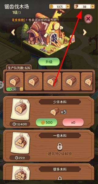 1、建造伐木场,消耗金币和材料建造锯齿伐木场,生产木材资源,为游戏的建筑和升级提供基础。