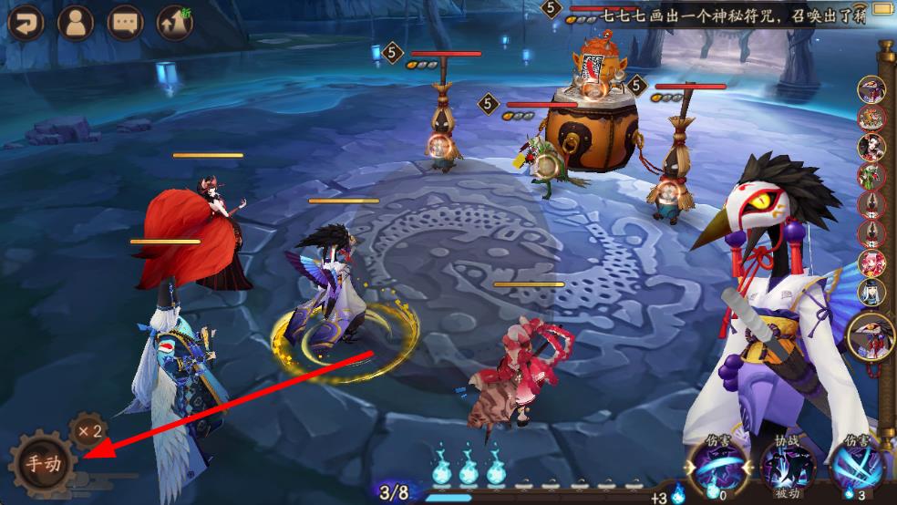 3、战斗开始后,点击界面左下角的手动按钮,切换为自动战斗模式,实现自动挂机。