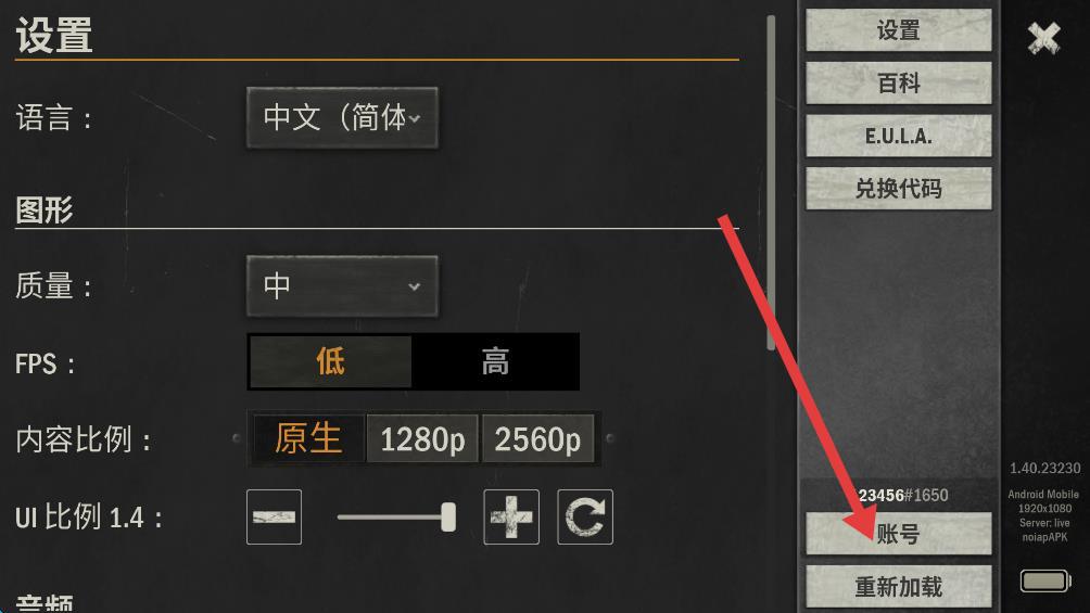 1、进入游戏主界面,点击右上角齿轮形状的设置图标。