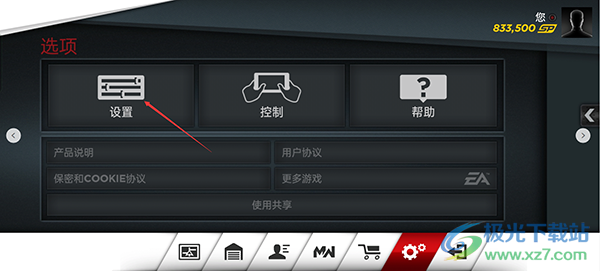1、进入游戏首页之后可以看到下发有一个【设置】按钮,点击进入;