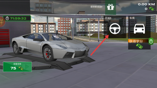 1、点击主界面【开始!】的方向盘图标,展开游戏模式选项。