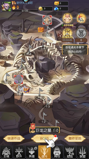 1、进入游戏大厅,点击下方的“BOSS”开始挑战主线关卡。