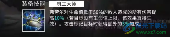 3、机工大师:弗劳尔对生命值低于50%的敌人造成所有伤害提升4%,如果目标没有生命值上限,则效果直接生效。