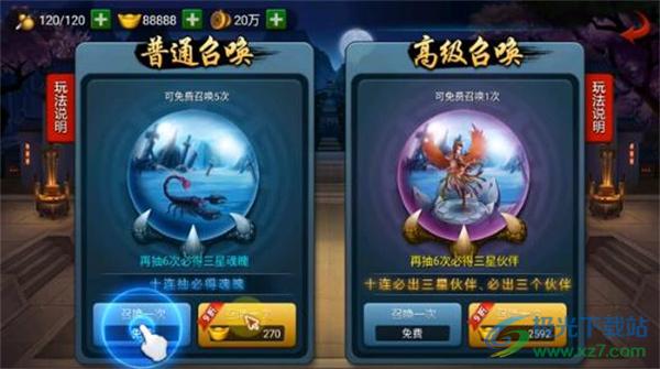 2、在召唤界面消耗元宝点击进行召唤。