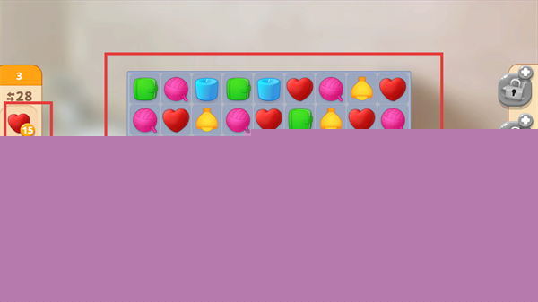 3、在关卡内匹配相同的【红心】【毛线球】等物品,消除它们以达成关卡要求的收集数量。