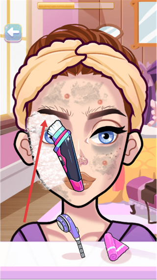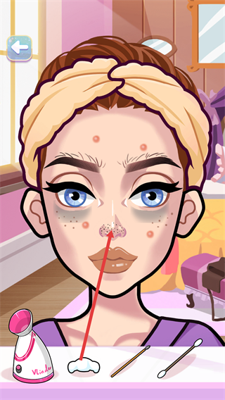 4、完成洁面后,在该界面使用鼻头贴的工具,对角色面部的细节部位(如鼻头)进行护理,推进美容流程。