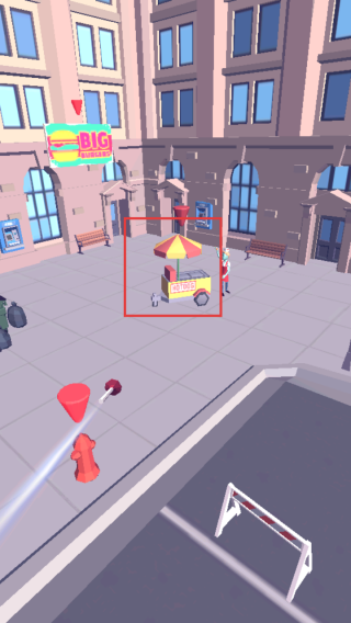 2、瞄准并攻击场景中红色方框内的摊位目标,完成关卡任务。