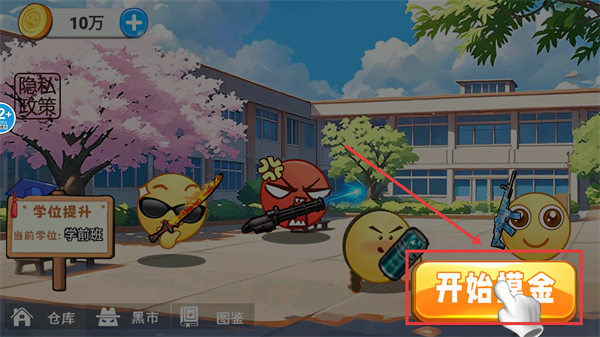 1、点击【开始摸金】按钮,进入游戏对局,当前显示学位为【学前班】,可通过对局提升学位。