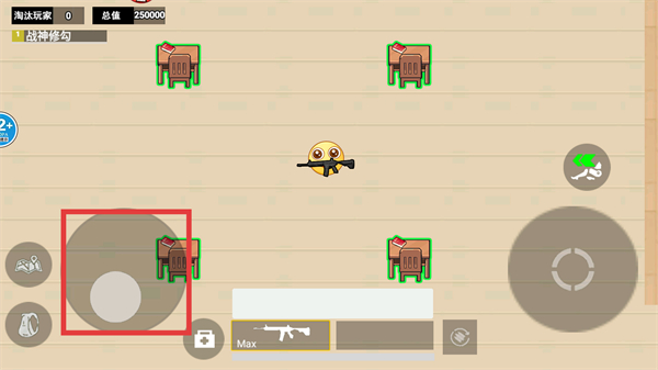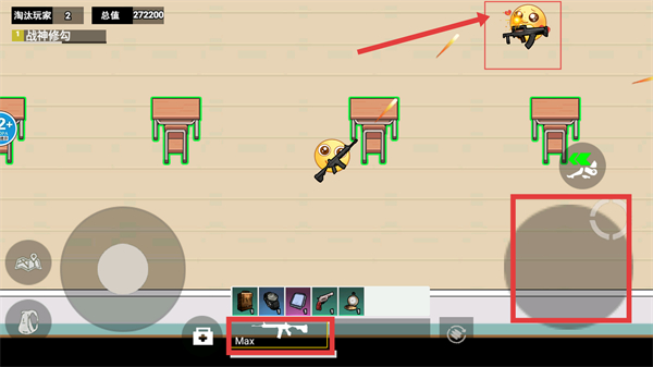 4、利用下方武器栏切换装备,通过右侧攻击键与其他玩家对抗,积累数值提升对局排名。