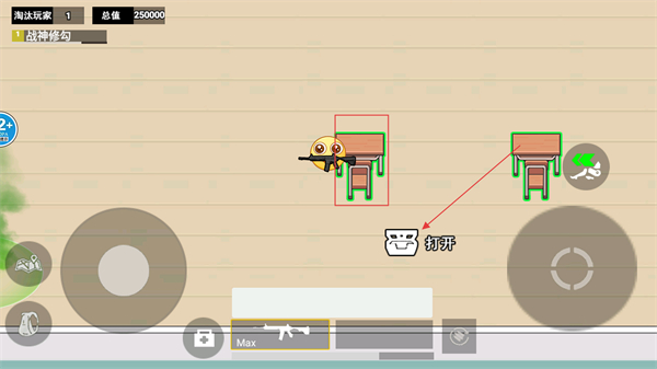 3、点击桌椅旁的【打开】按钮,可获取道具资源,同时留意其他玩家的动向,避免冲突。