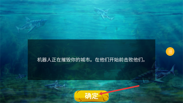 1、进入游戏先看剧情提示,得知需击败破坏城市的机器人,点击【确定】开启挑战。