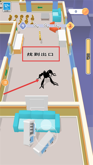 1、进入关卡后需按照【找到出口】的提示,操控角色避开怪物,规划移动路线。