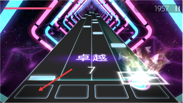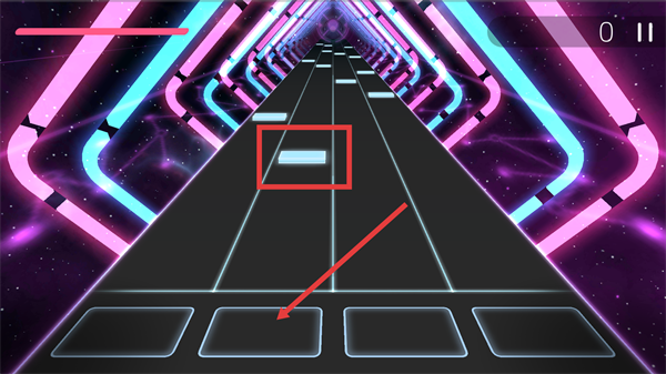 2、进入演奏界面后,当轨道上的按键块移动至底部对应区域时,点击下方匹配的按键,完成节奏操作。