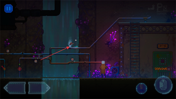 3、点击右侧功能按钮,触发场景互动如操作机关,解锁新的移动路径。
